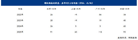 三、9月南北區域螺紋鋼價差情況