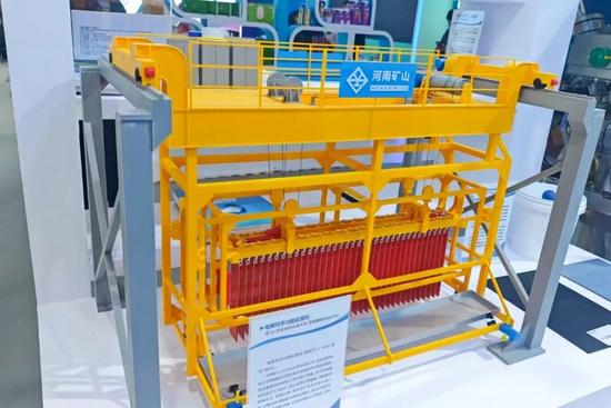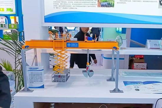 展會現場,河南礦山展出電解鋅多功能起重機、釀酒全自動起重機等特殊行業定制化科技成果。