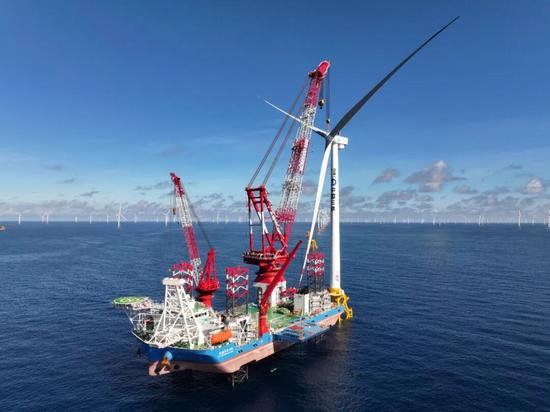 11月25日,鐵建風電2000完成三峽陽江青洲五海上風電項目第22臺風機安裝