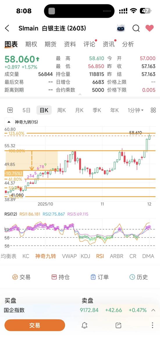 價格暴漲:倫敦現(xiàn)貨銀單日漲幅達5.64%,收于56.41美元;紐約期貨銀漲6.49%,突破57美元歷史新高,全年累計漲幅超90%。現(xiàn)在已經(jīng)超過58美元了!