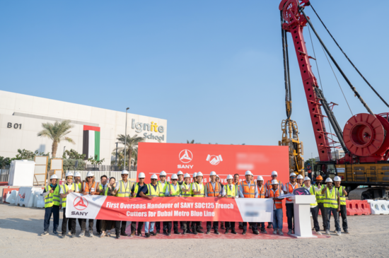 SANY Heavy Industry recently held a delivery ceremony for the world’s first batch of SDC125 Trench Cutters at the Dubai Metro Blue Line project site. Tan Bo, Chairman of SANY Middle East and North Africa Region, together with representatives from the project contractor, witnessed this important moment. The outstanding performance of the previously deployed SDC120 model in other Dubai projects has laid a solid foundation for the delivery of the newly upgraded SDC125 Trench Cutters.The two SDC125 Trench Cutters will be deployed immediately for station construction, providing solid support for the project’s efficient advancement.