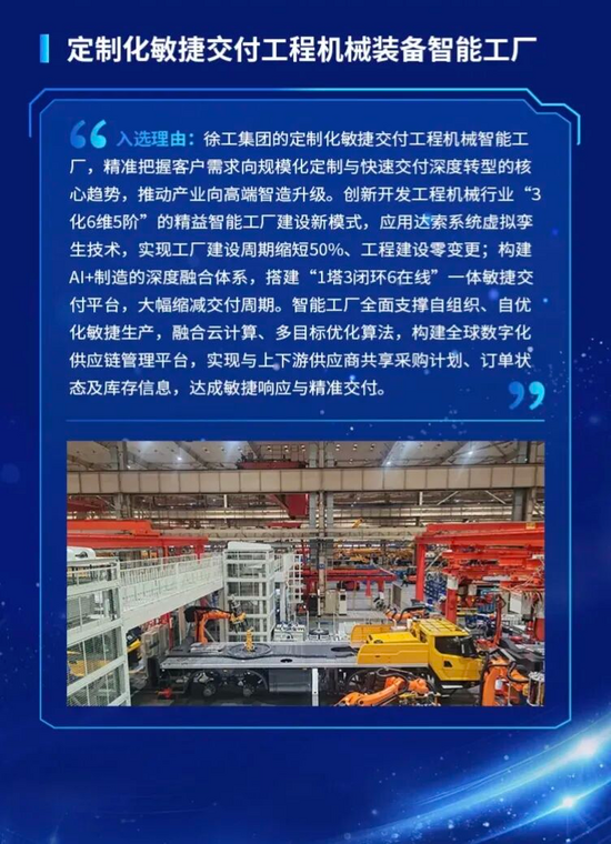 此次成果入選,不僅是對徐工智能工廠創新的認可,更是對全球智能制造領域定制化發展的積極展望。徐工正在以自身驗證成功的先進模式和標準,向產業鏈賦能,為中國裝備制造業整體智能化水平的提升貢獻徐工方案與智慧。