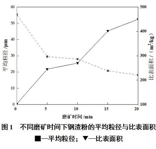 機械活化可以明顯提高鋼渣的膠凝活性,行星式球磨機最佳粉磨時間為15 min,比表面積可達到402 /kg,平均粒徑為20.74 μm,其活性指數為82.73%,較原粉提高了25.4%。
