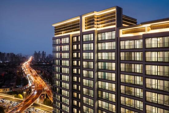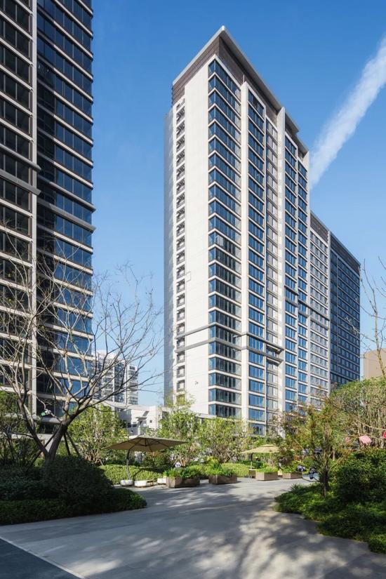 放眼整個社區,住宅樓棟依據一橫一縱的視線通廊高低錯落、禮序排布,營造出尊貴且舒適的空間韻律。與周邊樓盤外圍多是老舊建筑不同,凱德·淮海壹號是片區內唯一被內外雙園林環抱的小區,宛若一片鬧市中孑然獨立的靜謐綠洲。