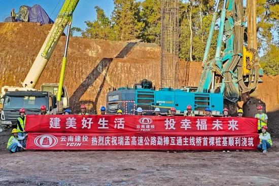 同日,瑞孟高速勐捧互通主線橋首棵樁基順利澆筑完成,標志著勐捧互通橋梁工程施工正式拉開序幕。