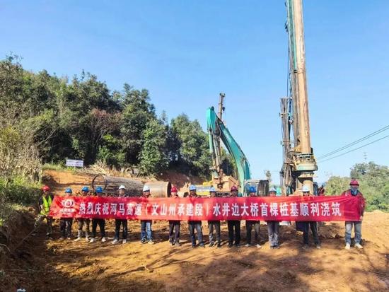 11月26日,河馬高速(文山段)水井邊大橋首根樁基順利完成澆筑,標志著該橋主體工程建設正式拉開序幕。至此,河馬高速全線已有6座橋梁全面進入樁基施工階段,累計完成樁基澆筑65顆,整體施工進展穩步推進。