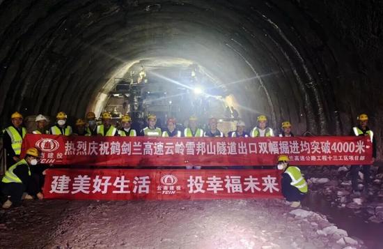 11月29日,鶴劍蘭高速云嶺雪邦山隧道出口雙幅掘進均順利突破4000米大關。