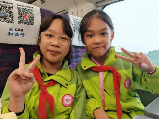 “老師跟我們說過龍州以前有個很老的火車站。今天,我們坐上龍州第一趟高鐵列車,很自豪。”10歲的梁同學邊說邊比了個“耶”。